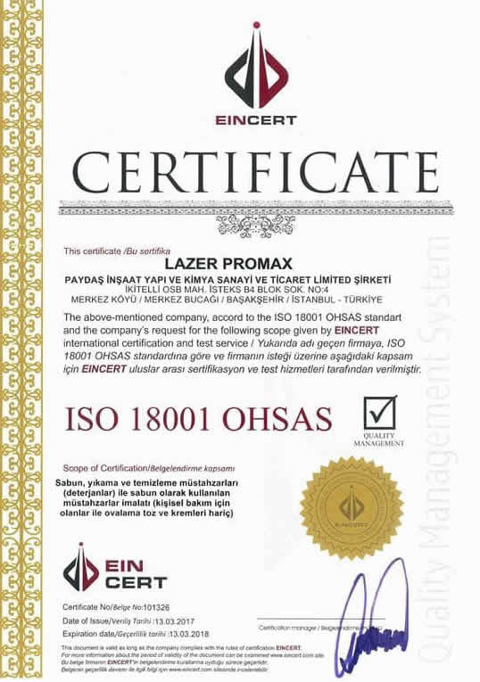 - ISO 18001 OHSAS SERTİFİKASI