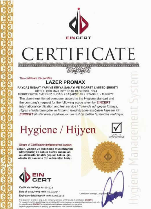 - Hygiene / Hijyen SERTİFİKASI